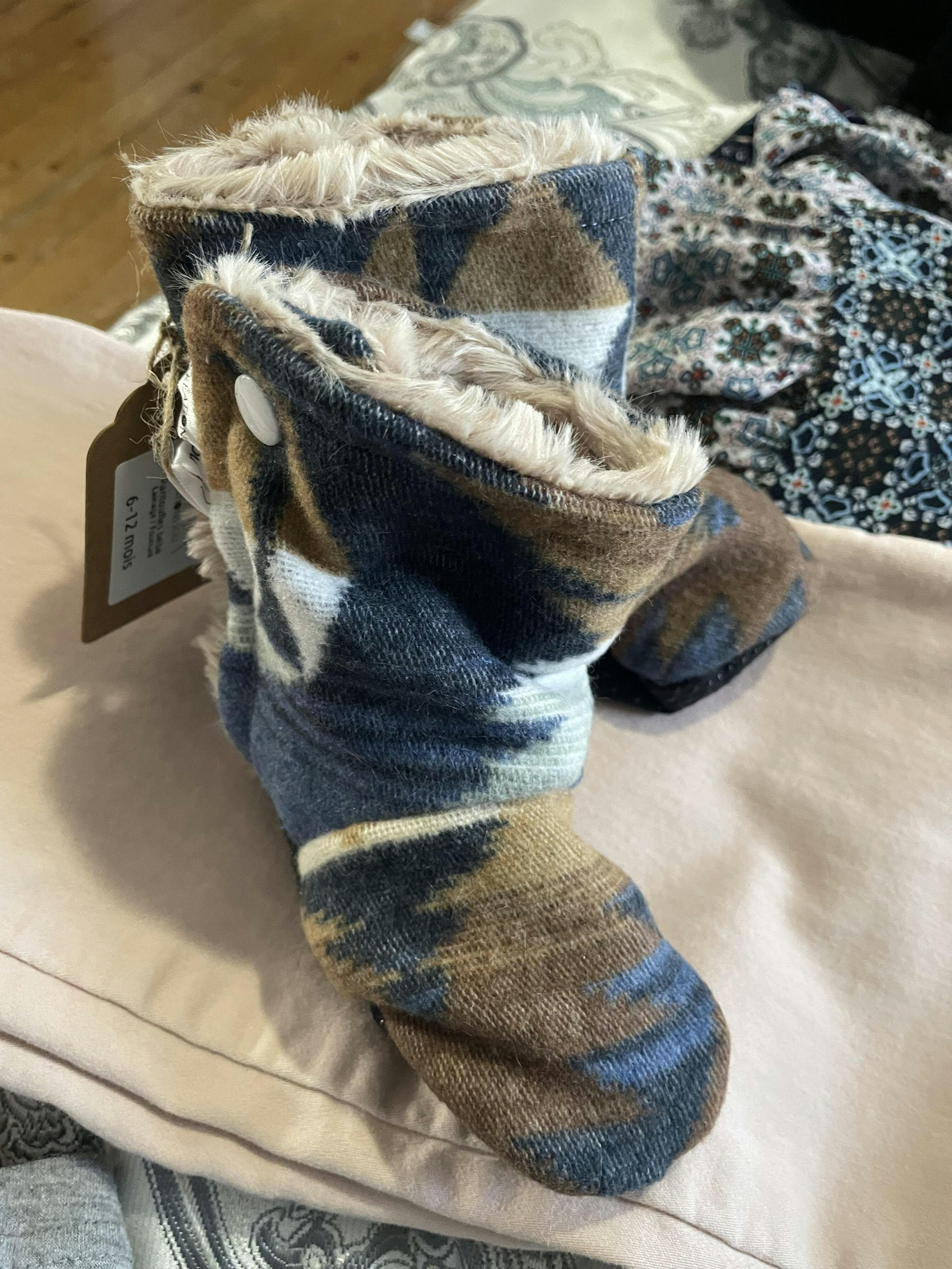 J’adore ces petites bottines pour aller faire une marche en portage. Ça garde les pieds de mon coco au chaud! ☺️